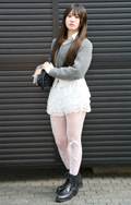 グレー~ブラックでまとめたコーディネートが今っぽい。レースな...