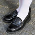 春だし、透け感のあるハイソックスが好きだし、今日のスカートとのバランスがよくて、このソックスにしました。ローファーはもともと好きでSalomon(サロモン)の靴かローファーをよく履きます。服とは違う抜け感で靴だけスポーティーなのが好きです。
