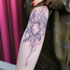 タトゥーを入れに来ました。兄がたくさんタトゥーを入れていて憧れていました。家族の人数に合わせて肩に魚のタトゥーを入れたのをきっかけに、どんどん入れていきました。腕には言葉にできないようなことをタトゥーとして入れました。足には、世界がぐちゃぐちゃすぎて、このタトゥーのようにまん丸な世界でやっていきたい、と思って入れました。