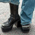 フレアデニムが欲しくて探していたんですけど、どのブランドも同じようなデザインで。このパンツは裾がつまんであって一癖あるのが気に入って購入しました。デニムのパンツをよくはきます。このパンツみたいなブルーのデニムを一番持っていて、計5本あります。白いトップスが多いから、一番この色が合わせやすくて好きです。高校生のときは濃い色のLevi's(リーバイス)のデニムを持っていました。よくはいていました。ブーツはローファーっぽいデザインがかわいくてずっと欲しかったものです。クローバーのネックレスは伊豆に友だちと旅行に行ったときにみんなでお揃いで購入しました。