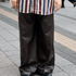 A フラットシューズは靴下が見えるのがかわいいです。靴下で色を拾って楽しんでいます。いままでも持っていたけれど、靴下で遊びたかったので今日はきました。上を主役にしたくて下はシンプルにしたかったんです。ネクタイとシャツを合わせてみたことがポイントです。
