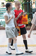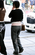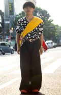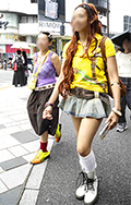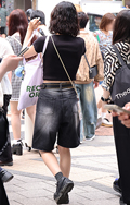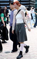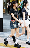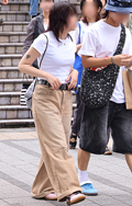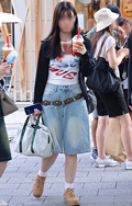 共布ベルト付きスカートも散見された渋谷地点。ポップコーンのよ...
