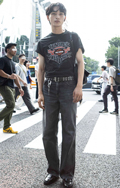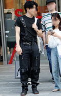 なんとダブルピンベルトを3連で巻き付けたコーディネートに遭遇...