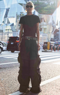 ベルトのみならず全身ハーネスのようなベルト装飾の装いも。ボト...