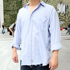 A RRL(ダブルアールエル)のシャツは、パリの人のようなかっこいい着こなしだと思って。基本長袖です。奥さんと結婚してから洋服好きに気がつきました。服も靴もたくさん持っていて、フリマで処分しています。シャツの裾は自分で切ったものです。