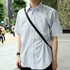 夏っぽくて爽やかなもの。半袖のシャツはこれが初です。ボーダーで水色が良かった。涼しいし楽です。いつもはきれいめな感じにショーツが多いです。先週Tシャツ着たからシャツを着ようと思いました。