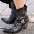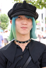 自作のスカートがアンシメトリーで足が出てしまうためブーツでバランスをカバーをしています。NEW ROCK(ニューロック)が好きで、これはブーツの先が尖っているのがいいです。
