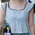 このトップスはもともと服が急遽必要になったときに大阪で購入したものです。トレンドかつ首周りが開いてる方が自分に似合うのでよく買います。3年前くらいに髪を今の長さに切ってからこういう形の服を買うようになりました。ドット柄で生地が夏過ぎないのも気に入ってます。今年の夏はこういった形のTシャツはもちろんブラウスやスクエアネックなどもトレンドなんだなと思います。バッグは自分の普段着る服に合わせやすい色である茶系やカーキ系をよく買います。