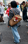 ショルダーバッグやトートバッグ等、肩からかけられるデザインのバッグのうち、素材がレザーのものすべて。フェイクレザーやスエードなども含む。色や大きさは問わないが、斜めがけスタイルは除く。