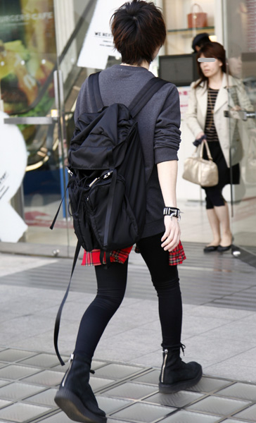 黒アイテムにキッチュなリュックをプラスしたMIXスタイル。黒...