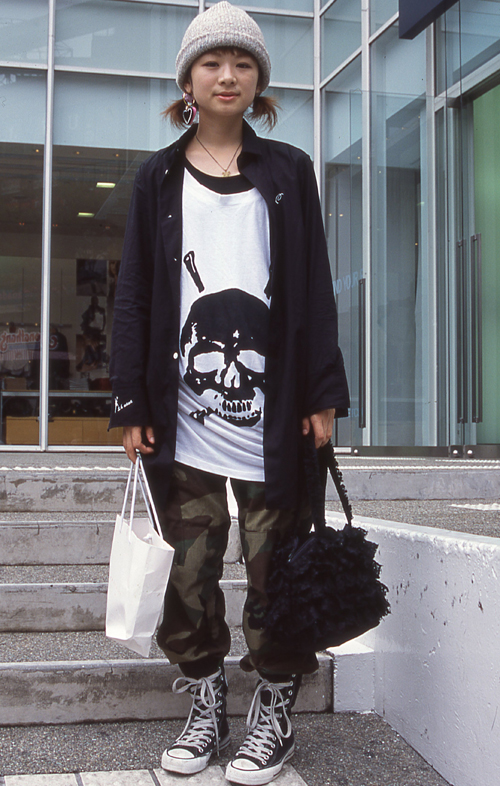いちばん上に着たトップスが黒い色のものすべて。ワンポイントや柄などが入っていても、ベースの色が「黒」であれば含む。素材やデザインは問わない。