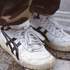 ハイカットスニーカーはアシックス。ふだんからスニーカーしか履かないんですよ。