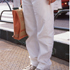 今日のパンツは、夏にリメイクしようと思って買ったんですが、そのまま履いてもかわいいなーと思って。グラマラスで白いパンツをハート型に破いているの(2万円くらい!)を見て、マネてリメイクしようと思ってたんですよね。