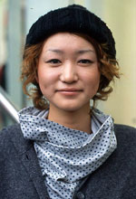 ニットのロングコートは、街の人が着ているのや、雑誌に載っているのを見て、かわいいなぁと思っていたんです。そんな時に、お店でこれに出会ってひとめぼれしました!フードにボンボンが付いているんですよ。