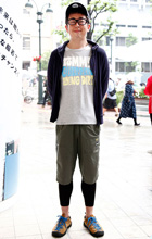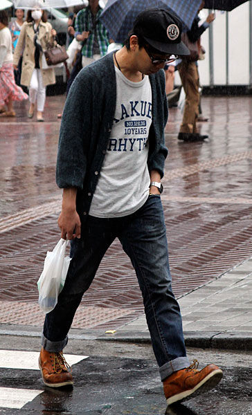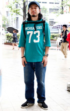 カレッジロゴ入りトップスはアメカジブームで育った30代の男性...