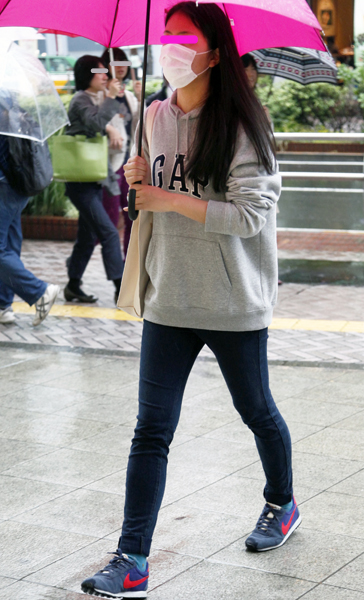 黒タイツにブーティのナイロンギャル系にも今季はNIKEがトレ...