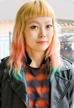 ヘアカラーは1週間前に自分でやりました。マニックパニックのピンクと青の染髪料を使いました。ベースの金は1年半前から変わりません。かき氷みたいな色にしたくて、こうしました。今季は今のピンク×青のカラーでいきたいです。昨年もオレンジ、水色などのグラデーションカラーでした。すぐ色落ちしてしまうので、好きな色にしています。