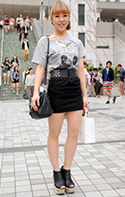 タイとミニスカートにTシャツをボトムスにインして着るスタイル...