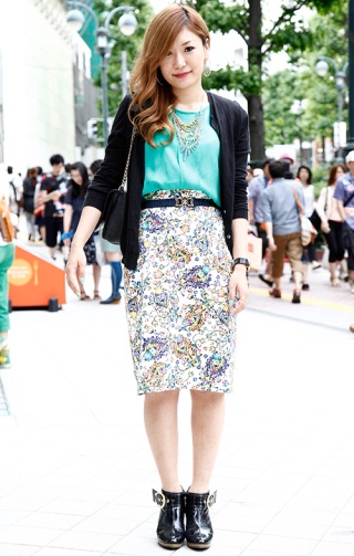 膝丈のタイトスカートはアラサーの大人層にも支持されている。ヒ...