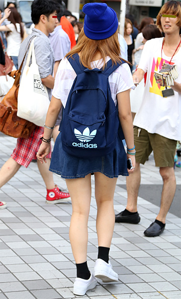 リュック、キャップ、スニーカーすべてアディダスで統一。まるで...