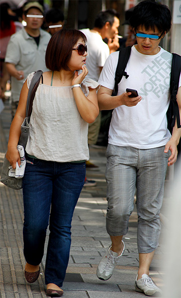 ペアルックのティーンズも珍しくなくなった。リュックはバッグパ...