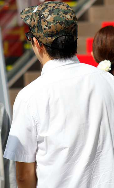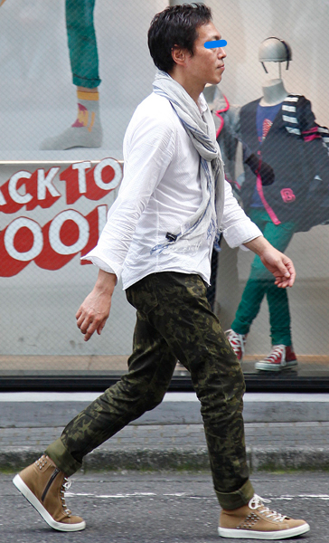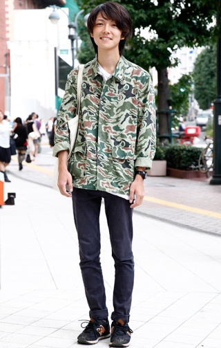 迷彩柄のカットソーをプロデューサー掛けしたちょい足しスタイル...