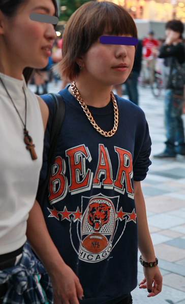 原宿では、ゴールドチェーンネックレスとキャップの組み合せが多...