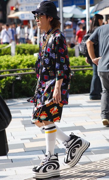 原宿のストリートでは、存在感のあるアイテムどうしを組み合わせ...