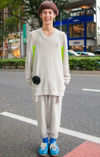 上下をスウェットで揃えた彼。原宿では、ビッグシルエットやスウ...