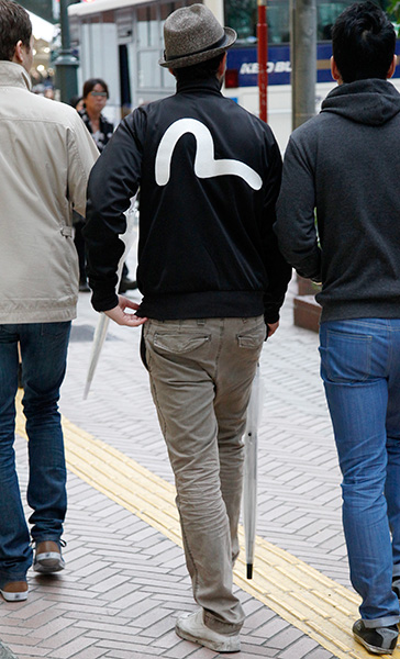 エヴィスジーンズの独特のペンキステッチのロゴマークが目立つブ...