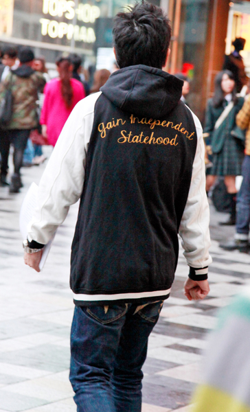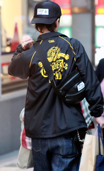 バックプリントだけでなく、腕や胸元にもワッペンや文字が配され...