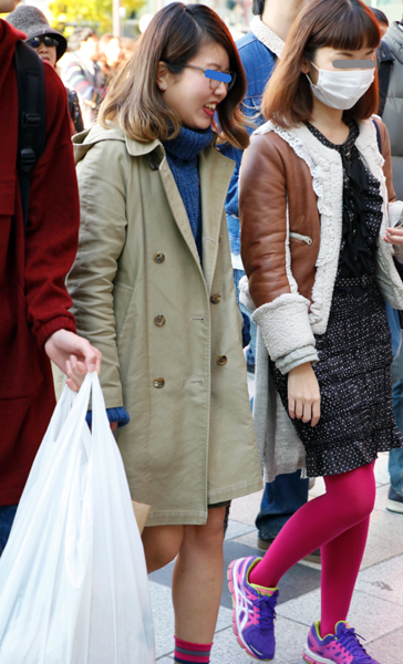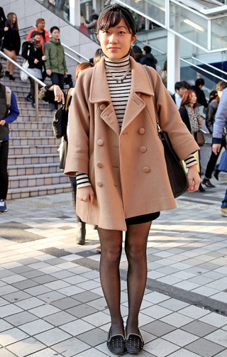 トレンチ風コートにローゲージのタートルニット+メガネを合わせ...