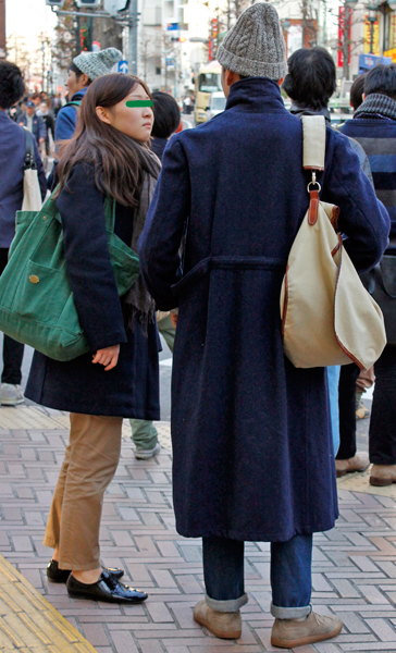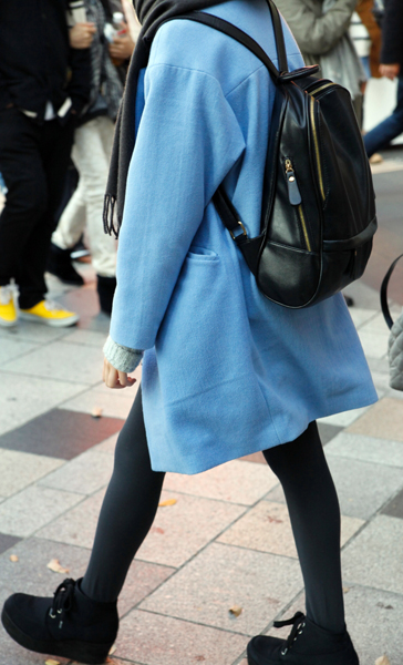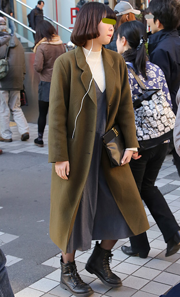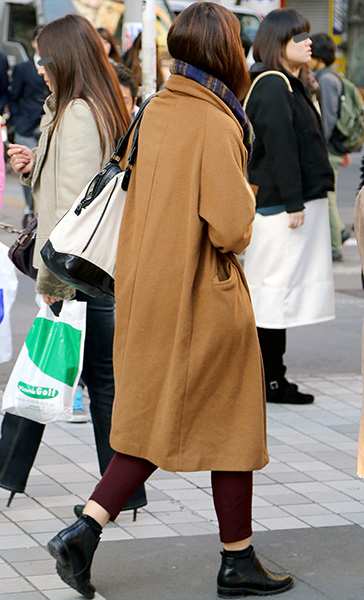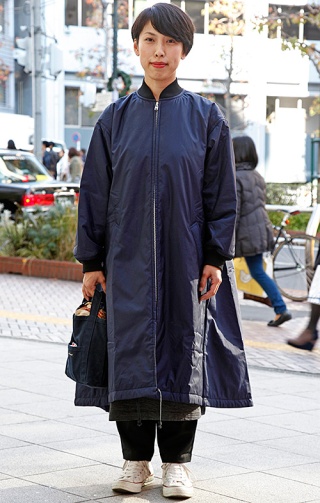 ちらほら見られたのがアウターの袖を通さず羽織るだけのスタイル...