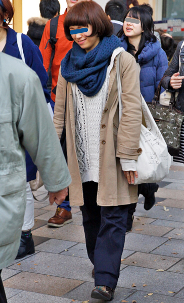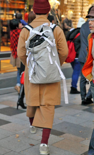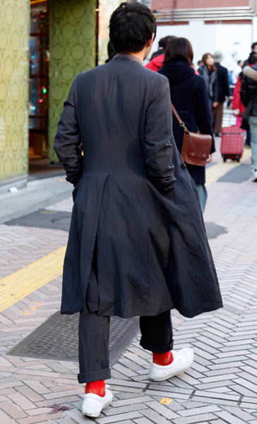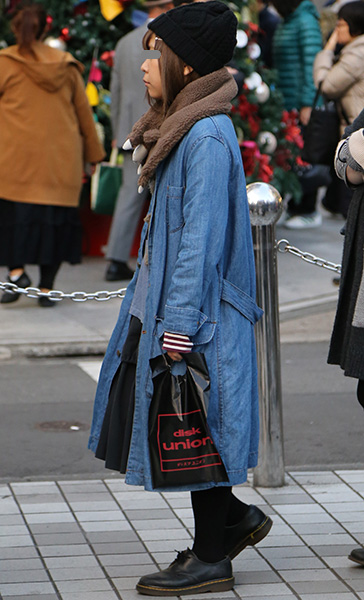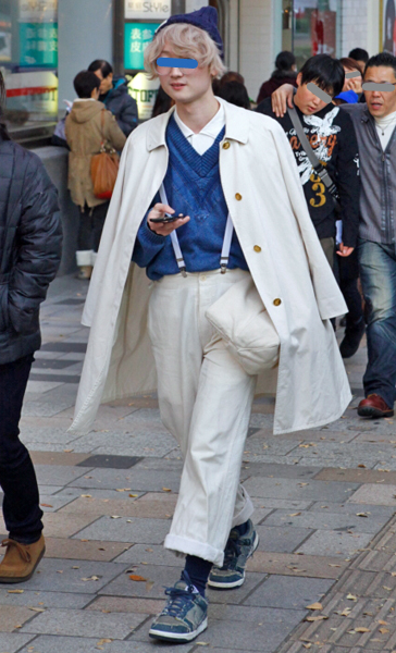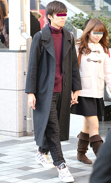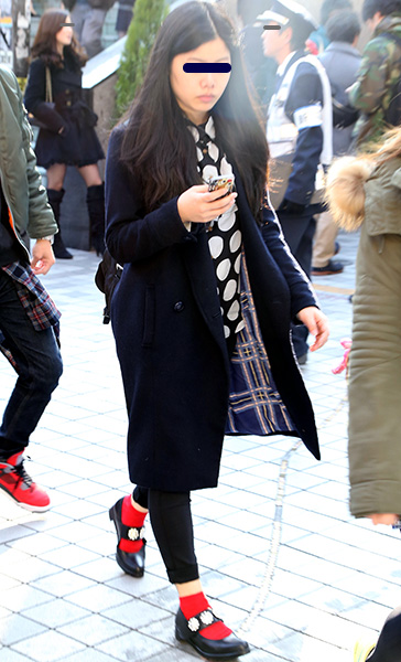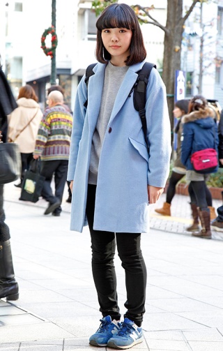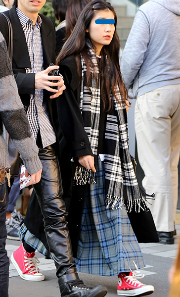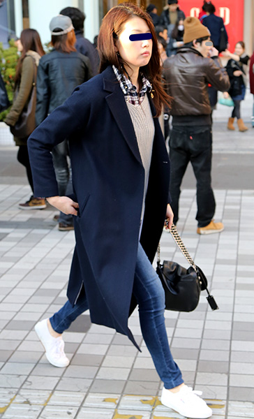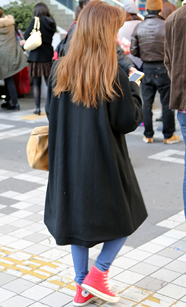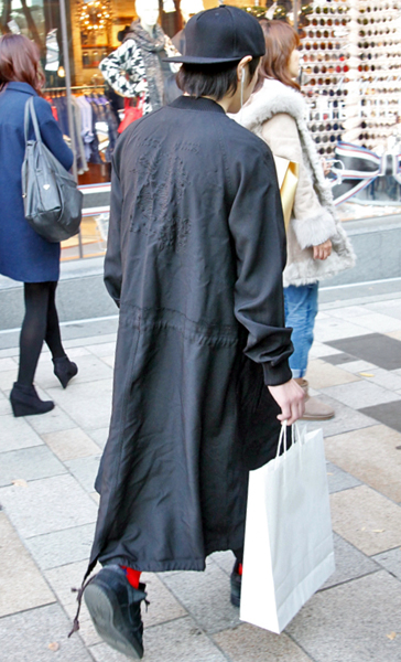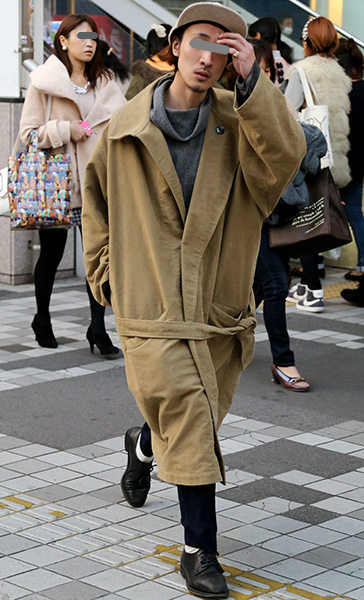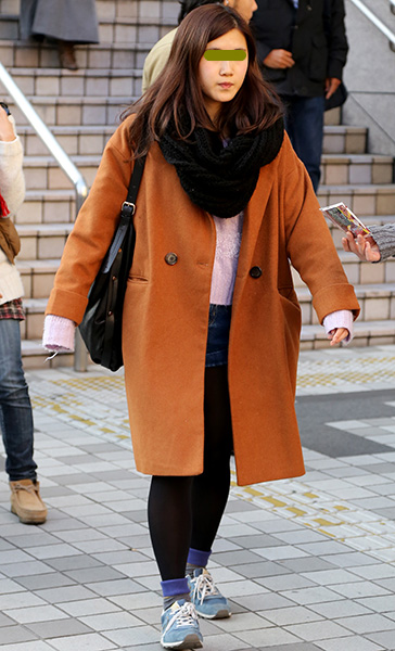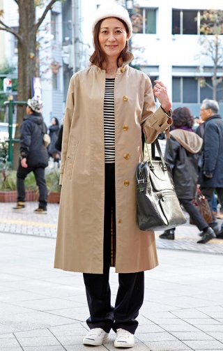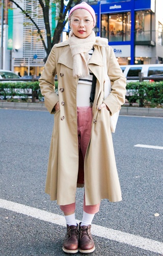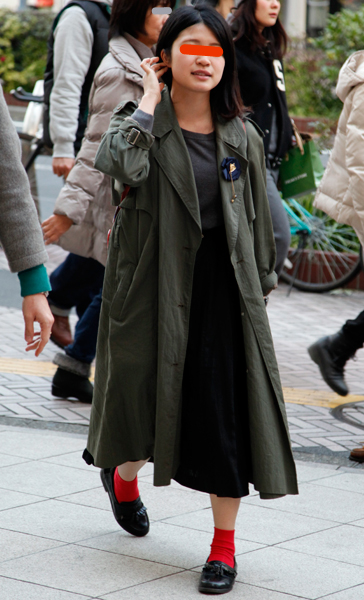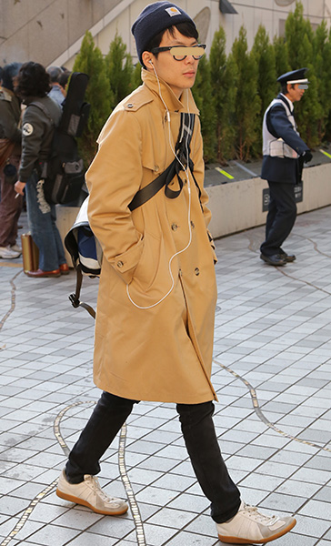 昨年冬に大流行した、トレンチコート+キャップ+白ソックスのシ...