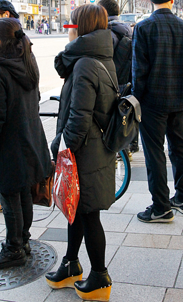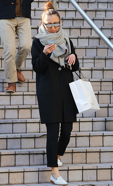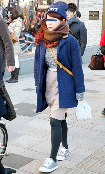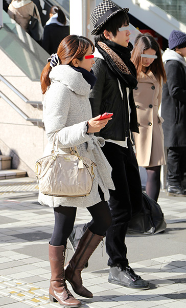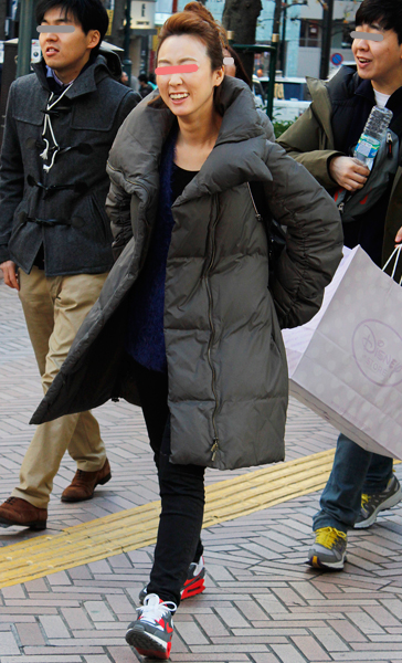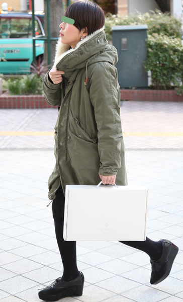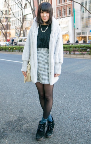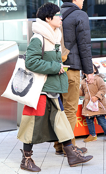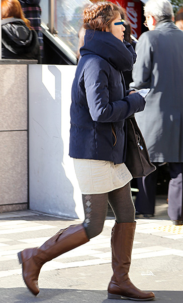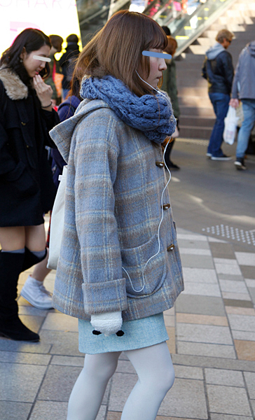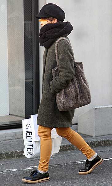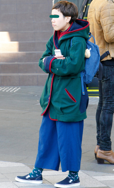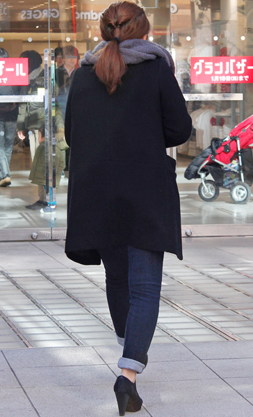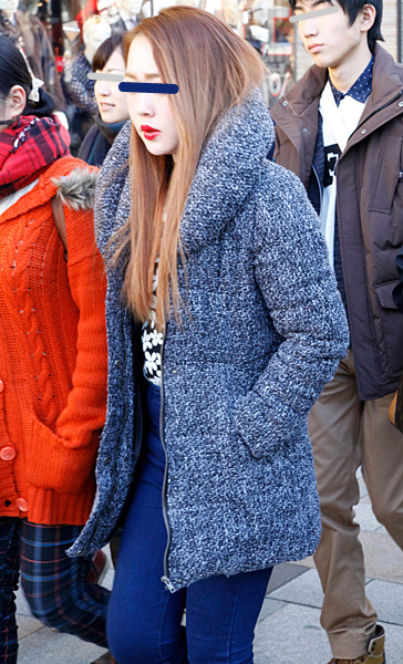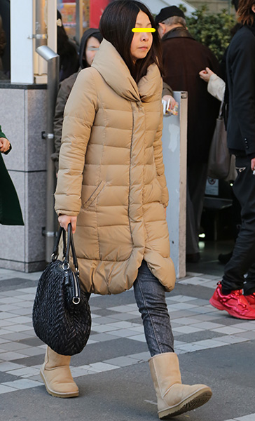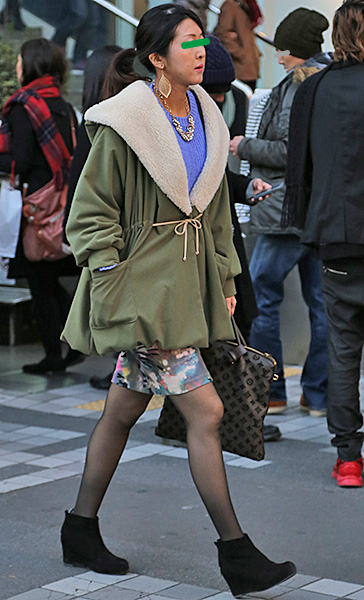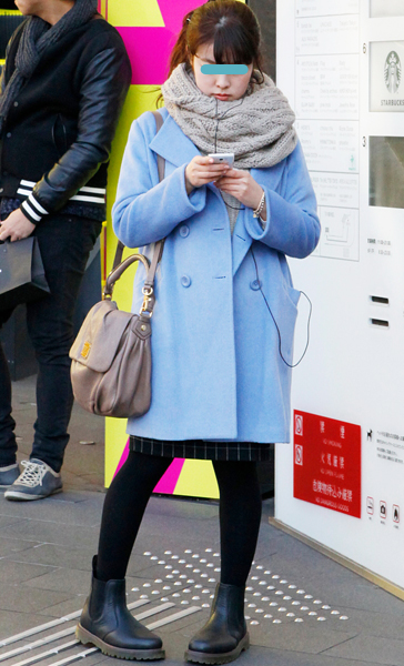 首巻きものなど別のアイテムではなく、アウターの襟やフード部分がボリューミーなデザインのものを着用している女性すべて。色や柄、素材は問わない。