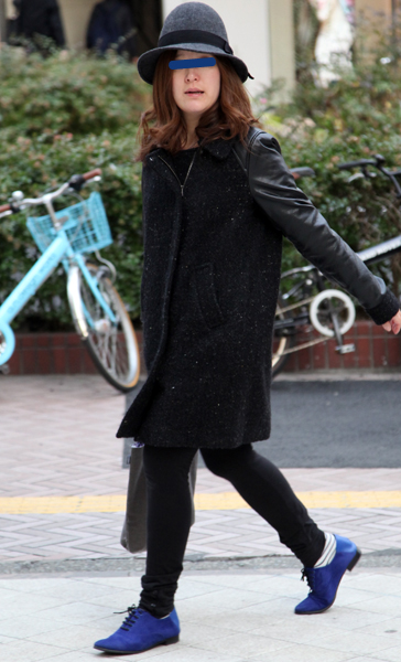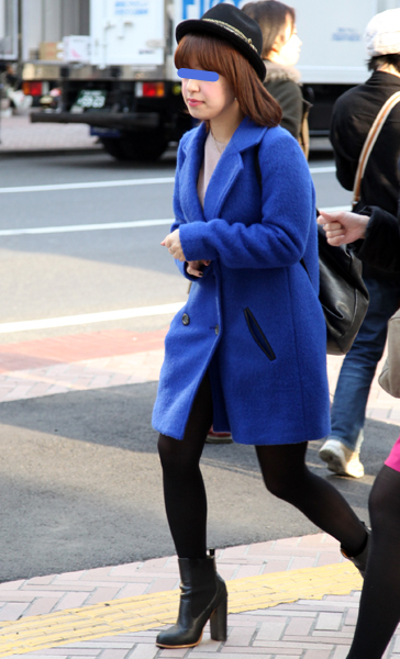 以前はピンクベージュなどを着ていた女子大生系も、ブルー×黒な...