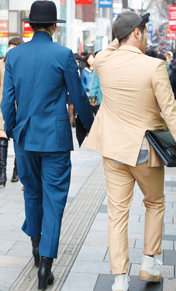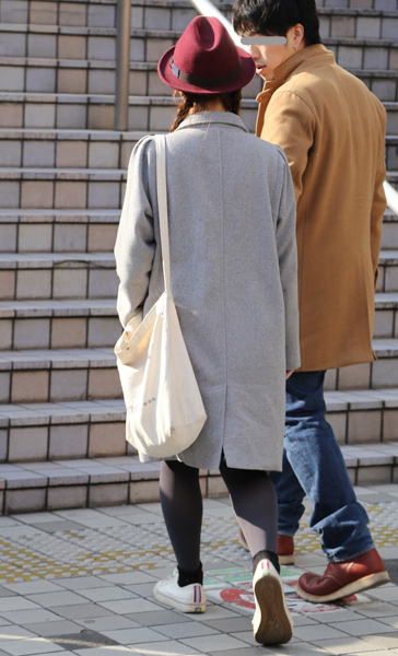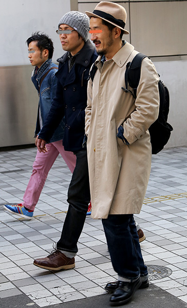 チェスターコートとハットの組み合わせが非常に多い。どちらも若...