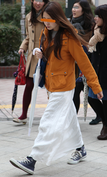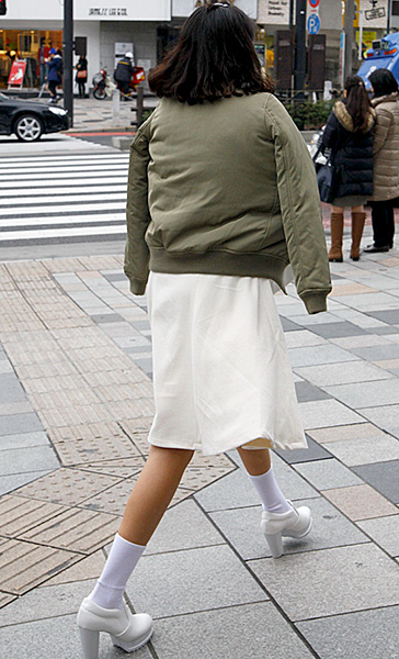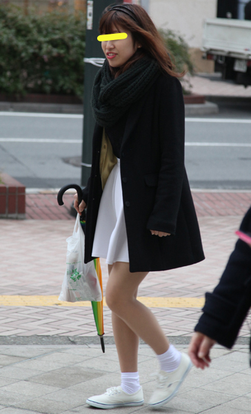 女子大生系を中心に白いフレアのミニスカートが急増。ソックス+...