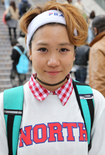 ギンガムチェック柄が流行っていると雑誌で知って取り入れてみました。今日は寒いし、もともと女の子すぎない格好が好きなので、ボーイッシュなスウェットと重ね着しました。妹とは服の系統が似ているのでよく服の貸し借りをしていて、今日着ているシャツも妹と共用のものです。普段は黒とか暗い色のものを着ることが多いんですが、今日は春を意識して明るい色のものを選びました。