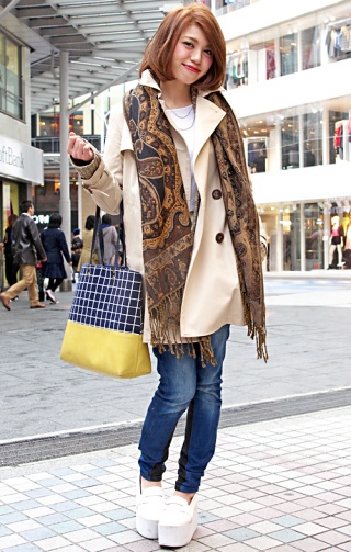いちばん上に着用したものが、生成り〜薄い茶色のものすべて。デザインや素材、柄、丈は問わない。