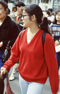 帽子、靴、バッグ、小物を除く赤い服を身につけた人全て。