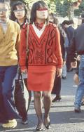 帽子、靴、バッグ、小物を除く赤い服を身につけた人全て。