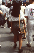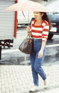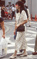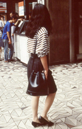 シャネル:キルティング素材で金鎖に皮を通したストラップ、シャネルのロゴマークがついているもの。四角形や巾着型等形は問わない。