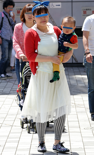 女性/男性白ボトムス:白い無地のボトムス(パンツまたはスカート・ワンポース、レギンスのみで着用している場合は含む)を着用する男女のすべて。素材は問わない。