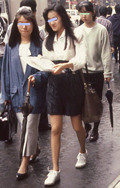 ■ズームアップアイテム定義丈がヒザ上20センチ以上のスカートを履いた女性すべて。