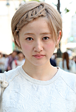 小学校のときからバスケをやっていて、ずっとベリーショートです。くせっ毛で前髪がおろせないので、いつも七三くらいに斜めに流しています。高校からカットモデルをやっているのですが、通っている美容院のセミナーで今度モデルをやるので髪の毛を伸ばしていて、ちょうど邪魔な長さなので前髪を編み込みにしました。