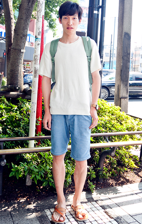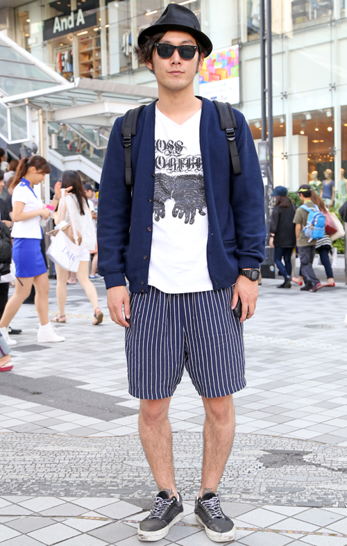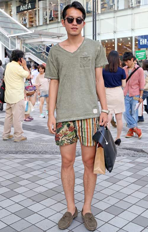 パンツの丈がヒザ丈またはそれより短いものを着用する男性すべて。色や柄、シルエットなどは問わない。