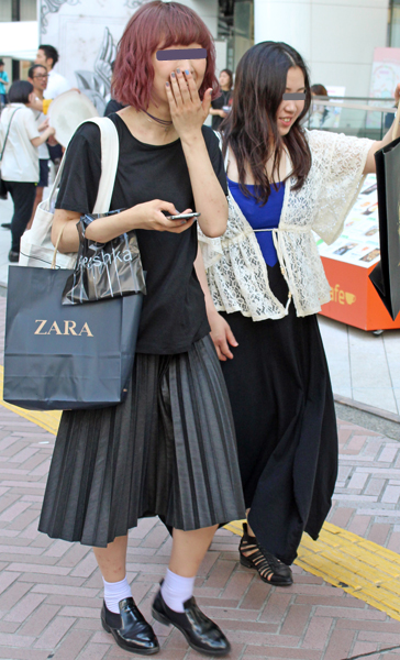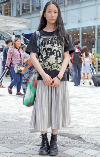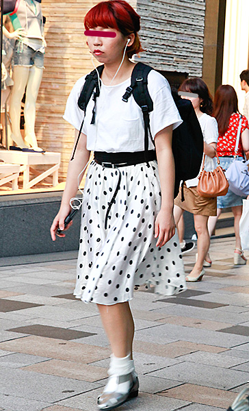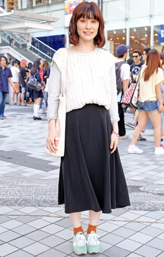一見修学旅行生のようにも見えるビッグシャツにミドル丈スカート...