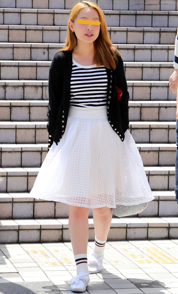 ガーリーな印象の白のミドル丈スカート。新人類ジュニア世代には...