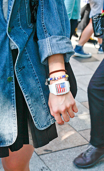 四角いフェイスを星条旗に見立てたポップな時計。ティーンズの女...